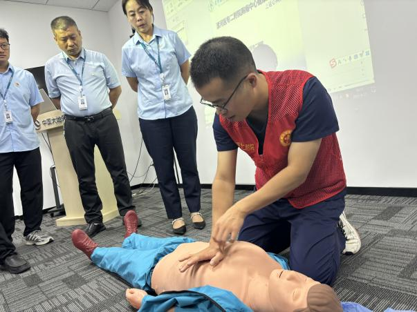 講座結(jié)束后,徐少奇醫(yī)生為大家進行現(xiàn)場演示,拆解CPR操作的全部流程,并現(xiàn)場設(shè)置實操環(huán)節(jié),為大家進行指導(dǎo),糾正“按壓位置錯誤”“力度不足”等常見錯誤,直至掌握正確的急救方法。演練現(xiàn)場氛圍熱烈,職工們都一一輪流進行現(xiàn)場實際操作。