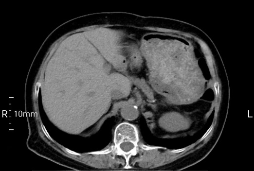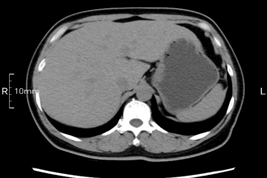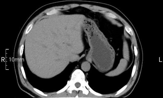 沒(méi)禁食,胃內(nèi)全是食物,導(dǎo)致胃壁顯示不清。