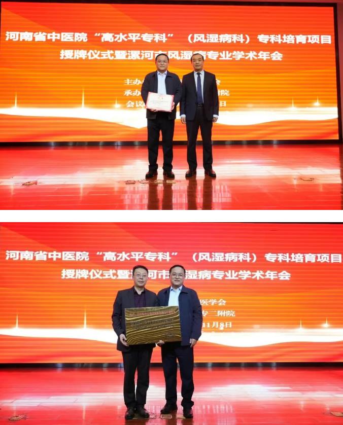 河南省中醫(yī)院風濕科主任孟慶良教授、漯河市衛(wèi)健委副主任于宏、漯河市醫(yī)學會秘書長花云,漯河醫(yī)專二附院院長王齊超、副院長吳廣良、紀委書記劉國鋒等出席會議。