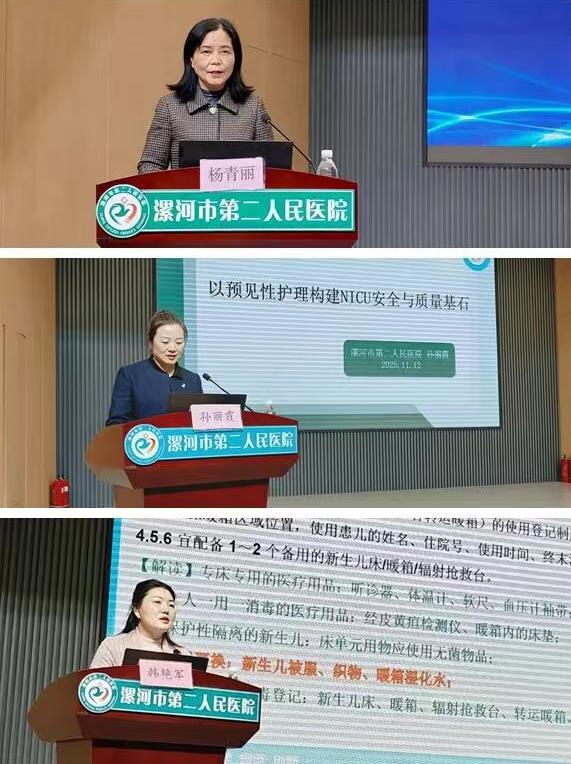 學(xué)術(shù)交流環(huán)節(jié),市中心醫(yī)院NICU護士長楊青麗以《新生兒低血糖臨床規(guī)范管理專家共識》(2021)為題,系統(tǒng)闡述了新生兒低血糖的“預(yù)防、篩查、干預(yù)、隨訪”四個重點;市二院護理部副主任孫麗霞分享了《以預(yù)見性護理構(gòu)建NICU安全與質(zhì)量基石》,點明預(yù)見性護理是NICU生命安全保障的基石,也是質(zhì)量持續(xù)提升的第一道防線;市二院感控辦副主任韓艷軍以《新生兒病區(qū)醫(yī)院感染預(yù)防與控制標準》進行了交流,闡明要嚴守感控標準,筑牢安全防線,保障每一位新生兒的健康與安全;市婦幼保健院兒科護士長鄭文韜以《高危兒靜脈通路的合理選擇》展開,講解了高危兒靜脈通路的選擇,核心在于基于個體評估,實現(xiàn)安全與療效的最佳平衡;市二院靜療專科護士李艷結(jié)合《兒童靜療常見并發(fā)癥的預(yù)防及處理》,提出兒童靜療安全,核心在于以預(yù)防為首;市二院傷口造口專科護士馬美華分享了《兒童常見皮膚護理與管理》,闡述嚴守預(yù)防底線,踐行精細照護,是守護新生兒稚嫩肌膚、避免醫(yī)源性皮膚損傷的根本之道。