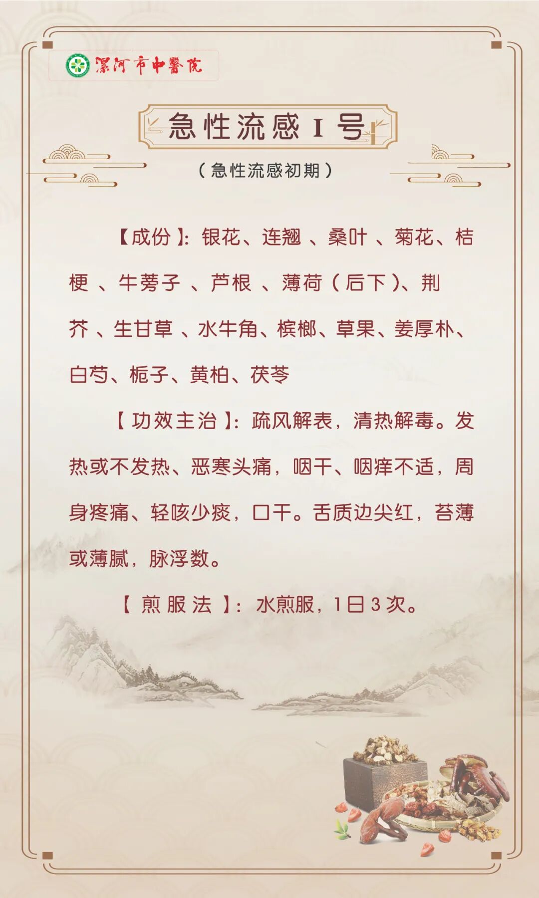 根據(jù)河南省疾控中心傳染病及相關(guān)健康危險(xiǎn)因素監(jiān)測數(shù)據(jù),漯河市中醫(yī)院積極組織專家對近期流感防治工作進(jìn)行綜合研判,充分發(fā)揮中醫(yī)藥特色優(yōu)勢,科學(xué)規(guī)范開展中醫(yī)藥防治流感工作,現(xiàn)將中醫(yī)藥防治流感方劑予以公布: