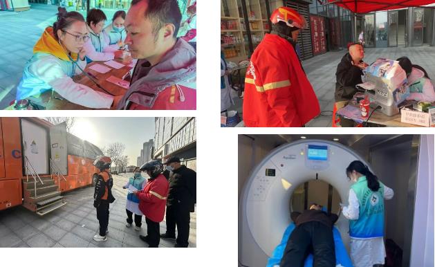 在紀(jì)委書記劉國(guó)鋒的帶領(lǐng)下,來自內(nèi)科、超聲科、醫(yī)學(xué)影像科等科室的骨干醫(yī)護(hù)組建專項(xiàng)志愿者團(tuán)隊(duì),針對(duì)外賣小哥長(zhǎng)期騎行、作息不規(guī)律的職業(yè)特性,定制了“高效精準(zhǔn)”的健康篩查方案——不僅涵蓋心電圖、甲狀腺彩超、血壓檢測(cè)、骨密度檢測(cè)等基礎(chǔ)項(xiàng)目,更調(diào)配院內(nèi)先進(jìn)移動(dòng)CT車進(jìn)駐,讓小哥無需中斷工作,利用送餐間隙就能完成全方位健康評(píng)估。