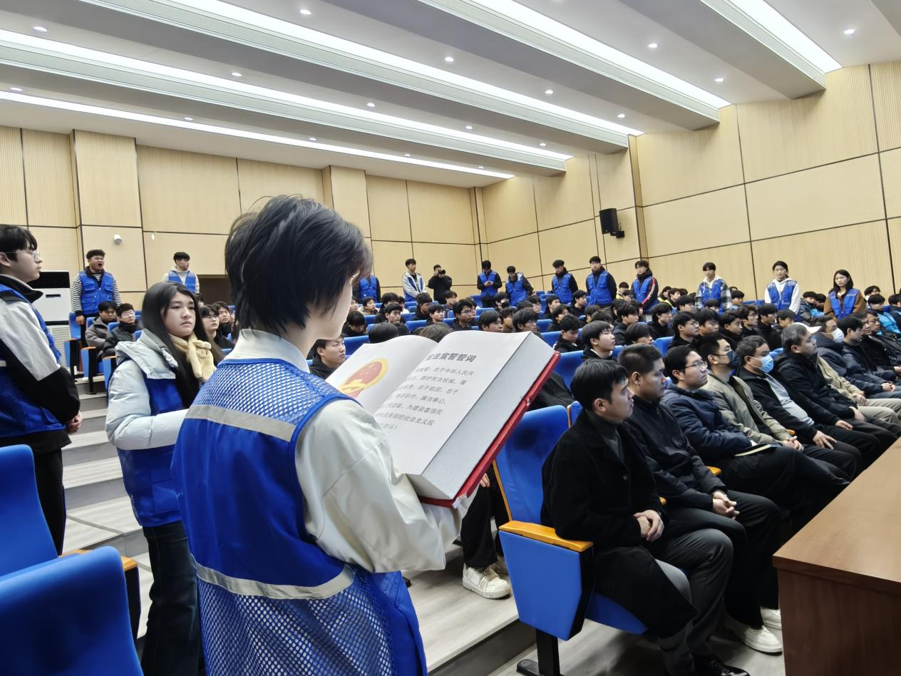 活動現(xiàn)場,漯河技師學院院長馮凱為郾城區(qū)人民檢察院檢察長胡君頒發(fā) “法治副校長” 聘書,副院長李君華為孟廟司法所所長高家斌頒發(fā) “法治輔導員” 聘書?,F(xiàn)場莊嚴有序,師生們奏唱國歌,舉行 “迎憲法”“閱憲法” 傳遞儀式,共同誦讀憲法序言,以實際行動表達了對憲法權(quán)威的尊重和對法治信仰的堅守。