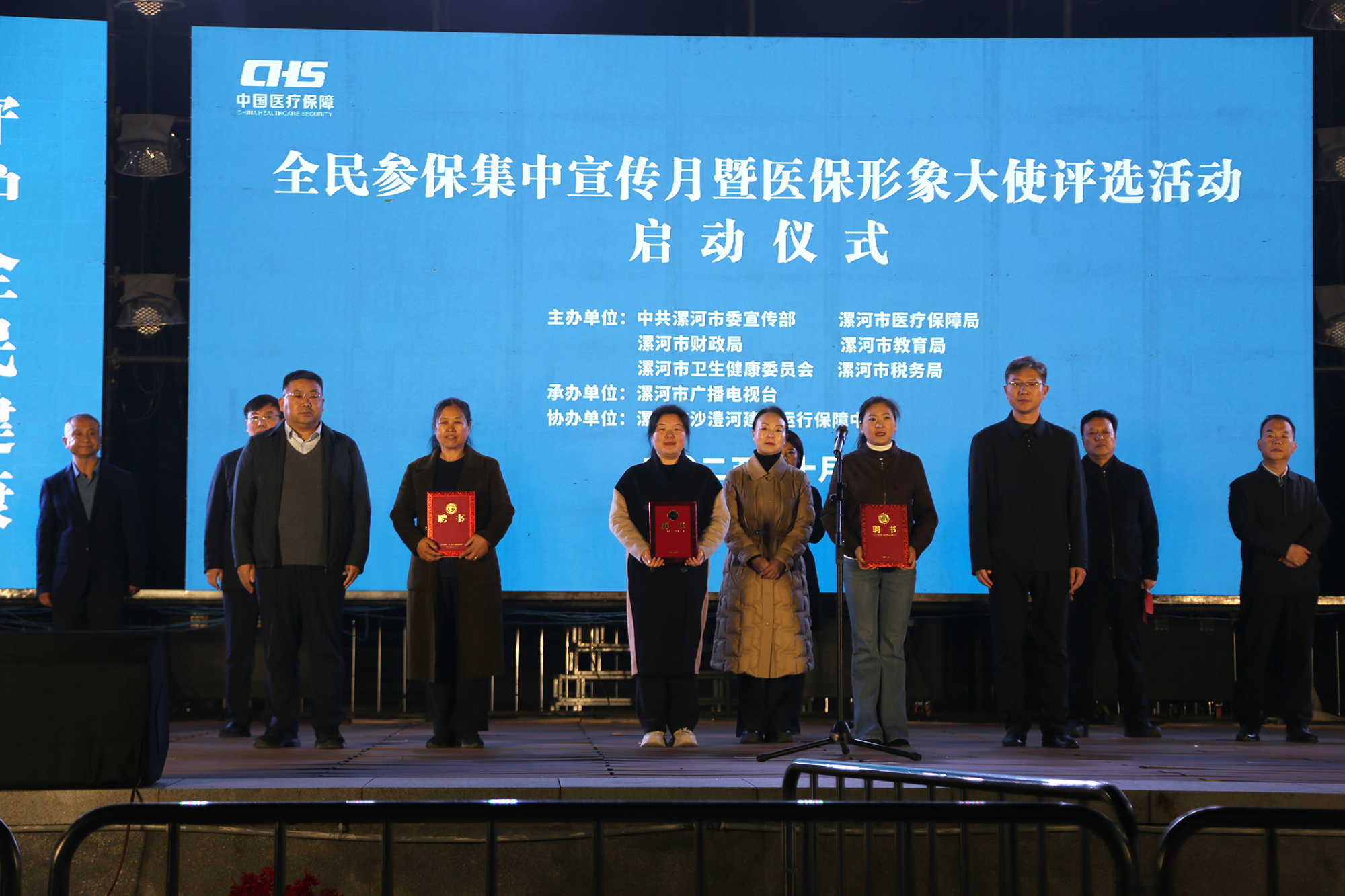 啟動(dòng)儀式上,市政府副秘書長(zhǎng)王廣濤主持并介紹,開展全民參保集中宣傳月與醫(yī)保形象大使評(píng)選活動(dòng),既是落實(shí)國(guó)家及省、市全民參保工作部署的具體行動(dòng),也是破解群眾參保困惑、提升社會(huì)保障獲得感的重要舉措。隨后,市醫(yī)保局局長(zhǎng)李志輝率先致辭,從醫(yī)保制度的民生意義、漯河醫(yī)保工作成效及本次活動(dòng)的核心目標(biāo)出發(fā),向市民傳遞了醫(yī)?;菝竦臏囟扰c決心;市委宣傳部副部長(zhǎng)毛志凌、市衛(wèi)健委主任楊躍偉先后發(fā)布全民參保倡議書,號(hào)召全社會(huì)共同參與醫(yī)保宣傳與參保行動(dòng);在全場(chǎng) 掌聲中,宋琰琰副市長(zhǎng)為國(guó)家級(jí)醫(yī)保政策宣講員劉佳琳頒發(fā)證書,毛志凌部長(zhǎng)、李志輝局長(zhǎng)、黃衛(wèi)平書記為省級(jí)醫(yī)保政策宣講員伽垚紅、李娟、郭繼英授證,以表彰先進(jìn)樹立標(biāo)桿,激發(fā)更多人參與醫(yī)保政策傳播的熱情。
