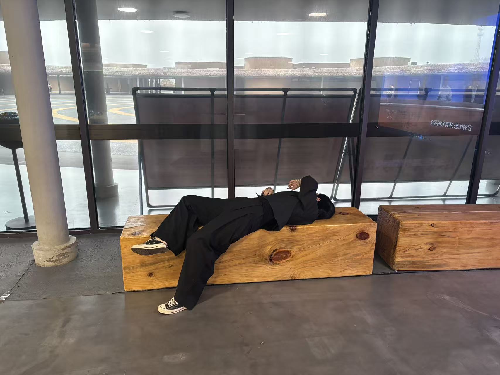 國慶期間,在賈湖遺址博物館,有游客躺長椅的不文明行為。