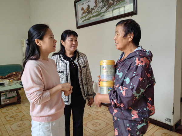 活動(dòng)中,鎮(zhèn)婦聯(lián)工作人員與巾幗志愿者一同深入各村,走訪慰問(wèn)了轄區(qū)7個(gè)困境兒童家庭。每到一處,李主席都與孩子監(jiān)護(hù)人親切交談,詳細(xì)詢問(wèn)孩子們近期的生活狀況、身體狀況和學(xué)習(xí)情況,耐心傾聽(tīng)他們的心聲和實(shí)際困難,并為孩子們送上了精心準(zhǔn)備的優(yōu)質(zhì)奶粉,叮囑家長(zhǎng)要科學(xué)喂養(yǎng),關(guān)注孩子的營(yíng)養(yǎng)健康。